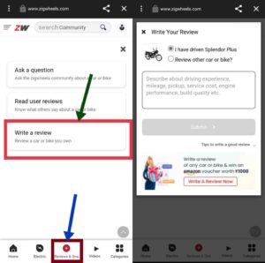 To be eligible for the Rs.1000 reward, your review must be genuine, detailed, and relevant. With Zigwheels, sharing your thoughts on bikes and cars isn’t just beneficial for others—it’s rewarding for you too. So, Follow the steps and Earn Free Assured Rs.1000 Amazon Voucher
